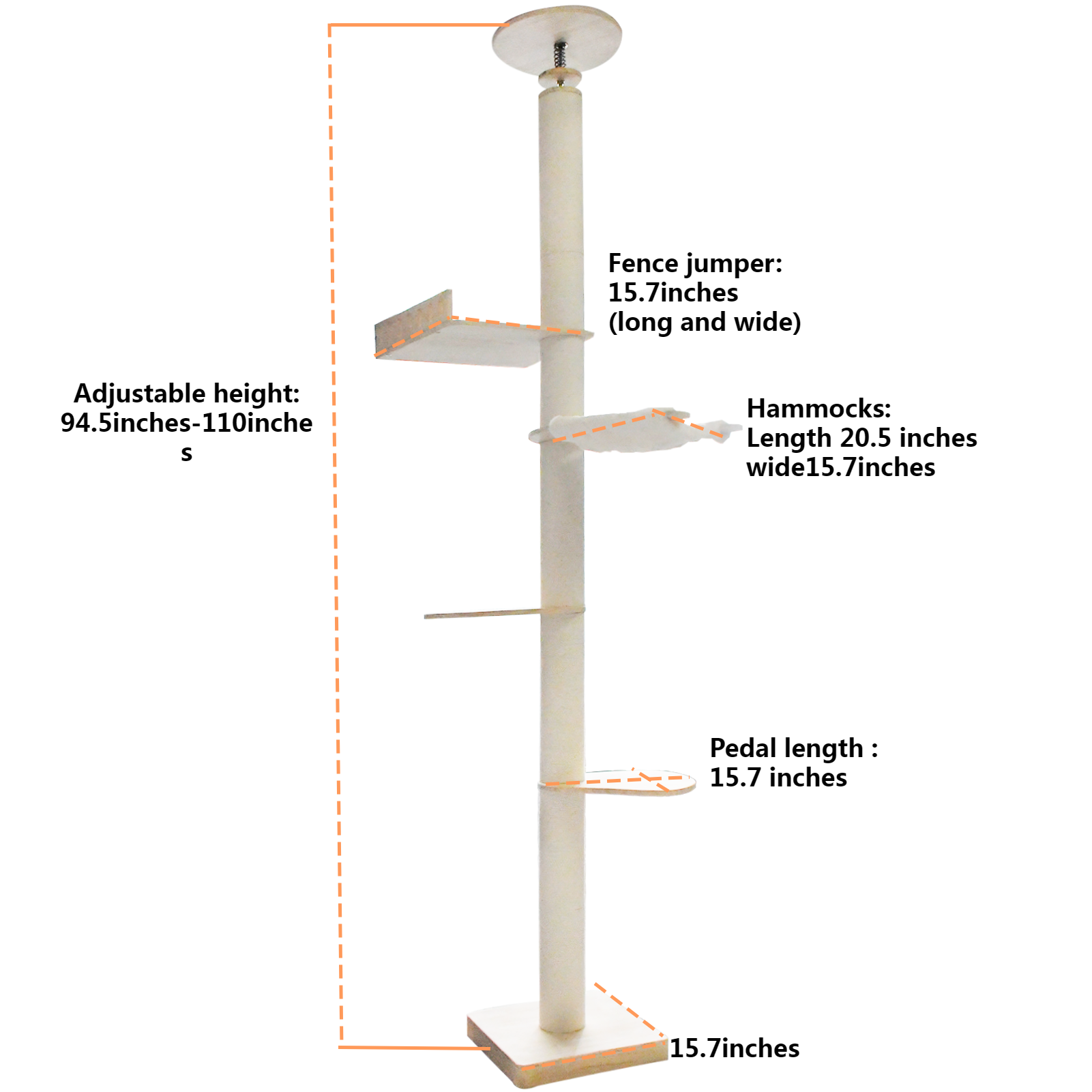 - No Need to Drill Holes on the Ceiling, Added spring to make the cat tree more stable.1